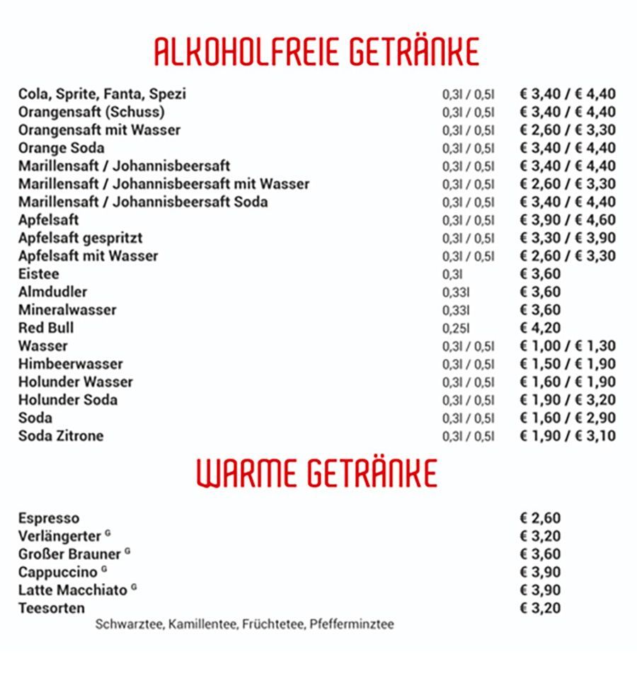 In der Pizzeria Piccantino in Schwaz erwartet Sie eine vielfältige Speisekarte, die italienischen Genuss mit Tiroler Hausmannskost vereint. Freuen Sie sich auf ofenfrische Pizza, klassische Antipasti, hausgemachte Pasta, Suppen, knackige Salate, herzhafte Grillgerichte und feine Desserts. Ergänzt wird das Angebot durch unsere wöchentlich wechselnde Mittagskarte, auf der Sie beliebte Tiroler Schmankerl entdecken – perfekt für eine abwechslungsreiche Mittagspause.